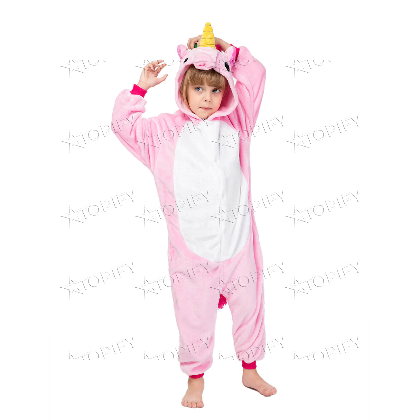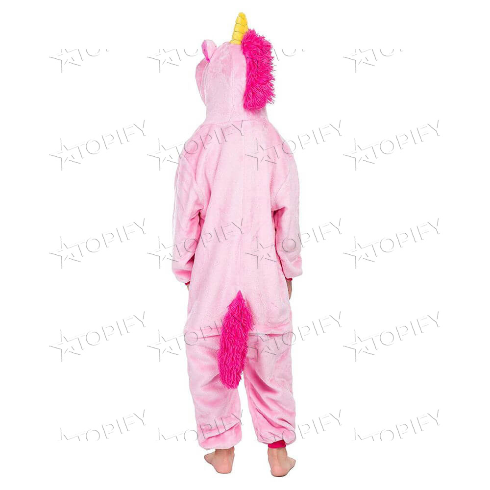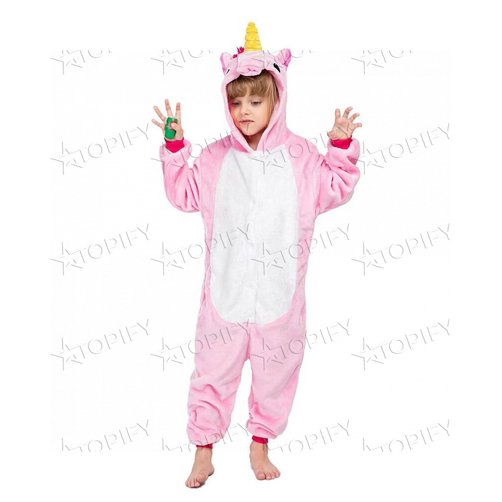 Пижама-кигуруми Розовый Единорог представляет собой комбинезон свободного кроя с капюшоном. Спереди застёгивается на пуговицы, сзади имеется дополнительная застёжка-молния. Тёплый и мягкий на ощупь. Материал - 100% полиэстер.